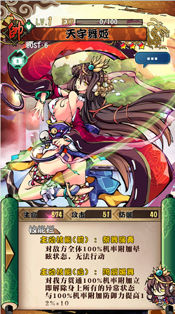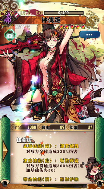 评价:神辅助,前排主动技能为全队提供大量的HP回复,配合前排被动自身的能量回复提升,可谓奶力十足(和本身的乳量再次不科学)。后排主动技能解状态也非常给力,真是人妻属性满满、居家旅行必备。强力推荐!