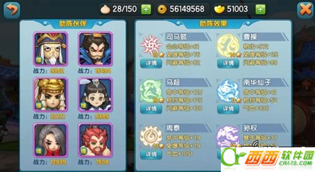 刚才说了不要把资源投到上阵武将上来,那应该投到哪?应该投到小伙伴上去,而且应该平均培养。当然,如果小伙伴暂时不齐,当然也不培养没用的武将,暂时就空着吧,集中打造好一个也行。培养小伙伴,应该齐头并进,才能达到战力最大化,经验控制在100级左右,再高成本就高了,武器也弄到100,紫武,腰带很重要,弄到紫色,100左右,适当的升星,有这几样,小伙伴的战力估计能到15000-20000左右,足够了,接着弄下一个小伙伴。资源充裕的,接着弄小伙伴的占星,把双气血和双攻击点出来,每样弄到30左右,对小伙伴的战力增加非常管用。目前对应五虎,适合呆在小伙伴的阵容有,刘备、孙权和曹操配上南华、周泰和五虎任一。因为SSS的气血高,所以战力一般都比较高,SSS是最适合做小伙伴的。而且这几个互相都有加缘分的气血,对战力的增加非常可观。南华能给貂蝉加法功,以后如果五虎搭配谋定的话,可以考虑用郭嘉换掉南华,其他再搭配。