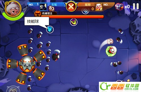 在战斗中,会随机刷出技能球,用角色触碰技能球即可触发技能,从而攻击敌人。战斗中有一定几率会刷新出问号的随机技能球,触碰后会随机使用一个通用技能。只要角色靠近技能球时,技能球就会朝着角色所在位置移动过来。