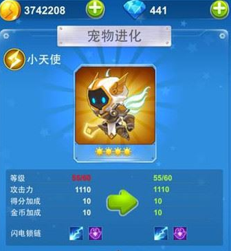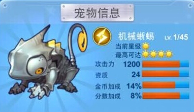 最暴力输出宠物机械蜥蜴,作为首款太阳级宠物闪亮登场!机械蜥蜴不仅有超人般的外表,也有如超级英雄般强大的属性和技能!但是从技能上来看,小天使还是相当不错的哦,电击敌机最多是5架哦,而且5秒内能造成5000的伤害,是一个攻击性的宠物,而且在90秒还会出现一只恶魔呢,真是相当不错的哦。