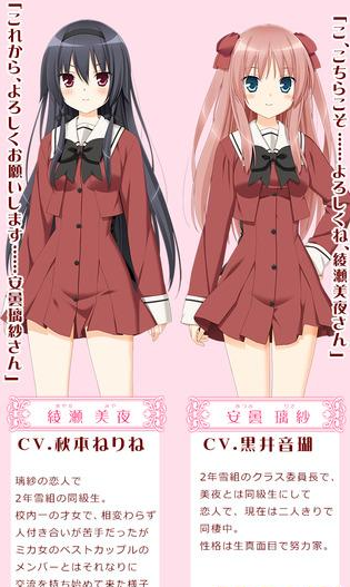 现在是秋季——当制服从夏服更替为冬装时,璃纱总会陷入回忆之中。 当第一次穿上学园校服上学的时候……与恋人美夜相遇了。 虽然现在两人是同居一起的热恋情侣,但是两人总是吵架,关系越来越差。 在璃纱看来,这其中跟美夜逃课有一定原因……