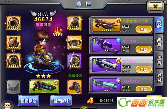 枪支在“背包”中查看,每把枪支的右上角显示的是枪支的属性,见下图