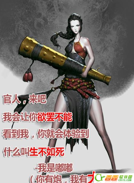 我是蛇蝎美人,火铳杀手,有胆你就来试试我的炮筒味道。------少年,想试一炮吗?