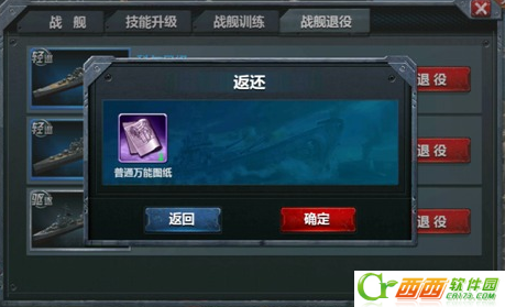 玩家可将其拥有的舰船进行退役处理,退役后会返还玩家部分资源和道具,而退役分为“普通退役”和“高级退役”,普通退役不消耗任何道具或资源;高级退役消耗1个指定的道具。