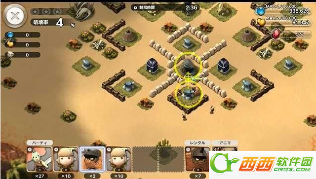 然后派出几只ブラウニー去破坏下方的メガトン砲,在这之前要先破坏正面的炮台,在破坏正面炮台之时,我们可以派出アーチェ支援。