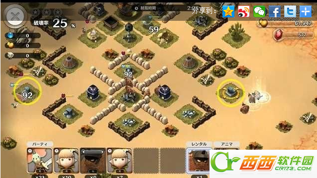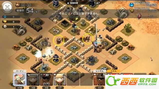 用アーチェ去破坏中央的炮台,黄色圆圈的エリア是为保证远程兵能够有足够的输出而放置在那里,破坏炮台之后就用剩下的战力一口气歼灭他们吧!
