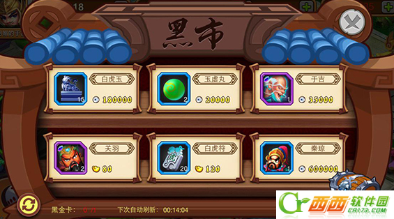 黑市是街区中的一个公共建筑,可在里面购买商城中买不到的珍惜道具。(如武将训练材料、升级材料,甚至是武将碎片)