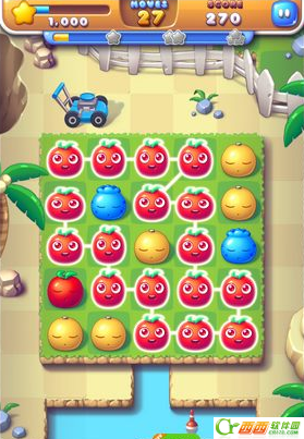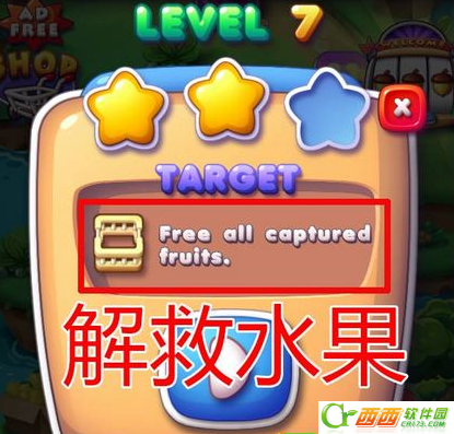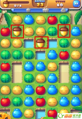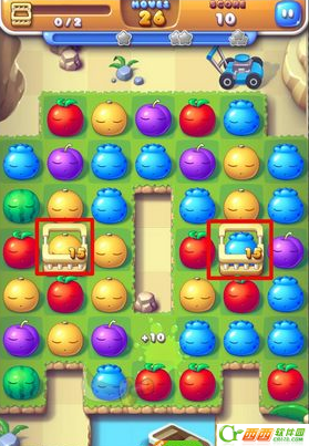 关卡介绍:关卡开始随机出现几个被困住的水果,我们通过消除来解除。