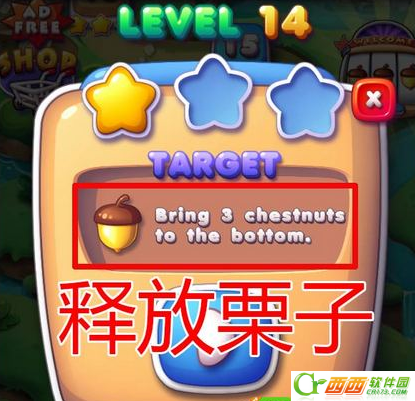 关卡介绍:游戏界面会随机下落栗子,我们的目标是消除栗子下方障碍,释放出栗子。