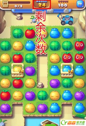 关卡技巧:游戏开始,同样直奔水果,多次消除之后,水果就会被释放出来。水果上标记的“15”数字,意思是需要消除15个相同的水果,才能解救该水果。