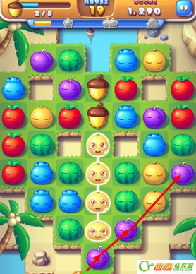 2.消除几个水果以后,第一个榛果如图所示连接水果即可获得。