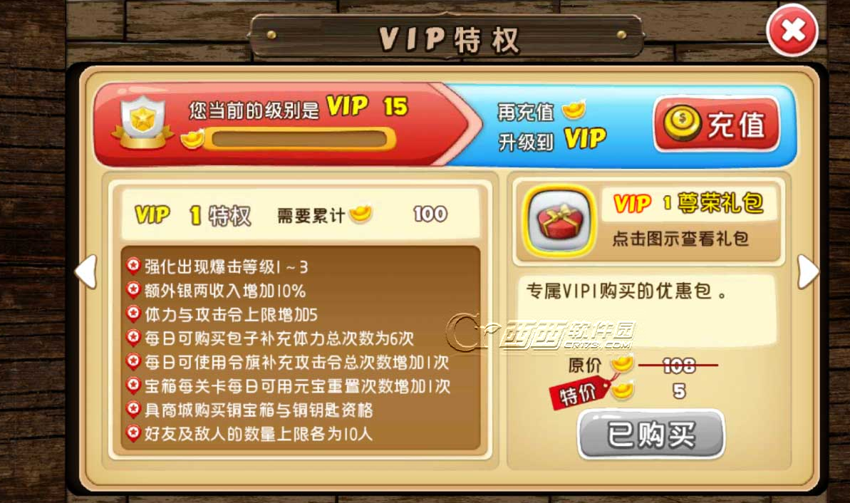 当玩家每日到活动接口进行免费的【每日签到】或是储值时,都会累积VIP经验值,可以用来提升VIP等级,VIP等级越高,可以享受到的特权就越多。提升VIP等级后,除了可以享受到VIP特权之外,还能够以极优惠的价格购买超值尊荣礼包。