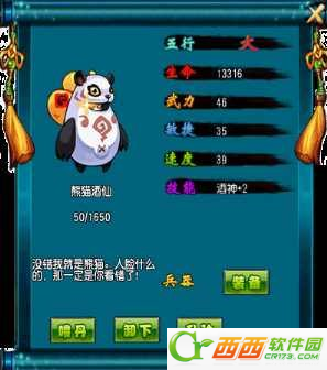 仙魔剑2熊猫酒仙是游戏里面一个非常可爱的宠物,没醋我就是熊猫,人脸什么的,那一定是你看错了。高大威猛的身材,与背后背着的一个竹酒筒,都很难让人与熊猫联想起来哦,不过我们可不要小瞧它,游戏中,这只爱喝酒的熊猫,能够为我们发挥出强大的作用的哦。