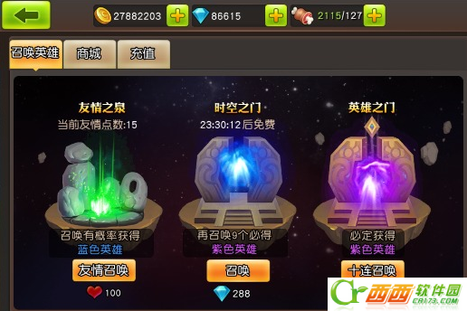 Tips:钻石可通过充值、竞技场排名与每日任务获得,攒够足够的钻石,快去召唤你心仪的英雄吧!