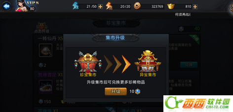 点击左上角的升级按钮,珍宝集市升级为异宝集市,需要消耗10个仙魔石。