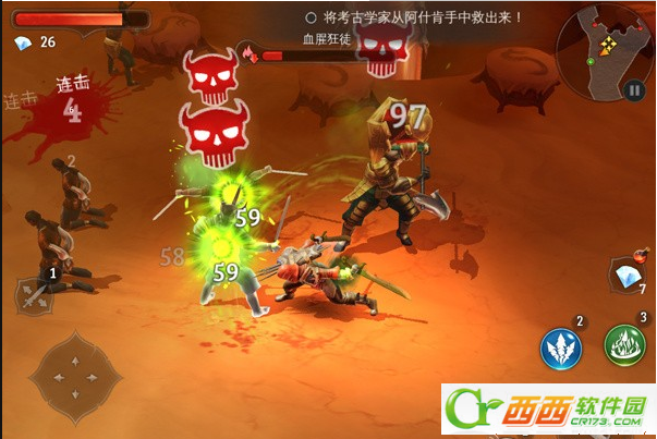 第五关来到了沙漠,敌人的攻击力上升不少,在这之前强化下防具和武器是很有必要的,考古学家在沙漠的上方并和一个巨型怪兽交战,如果你的武器和防具升级过的话,怪兽并不会对你造成多大损害,相反熔火虫的飞扑攻击倒是非常让人烦躁,尽量避免不要被他们耗费太多血量。
