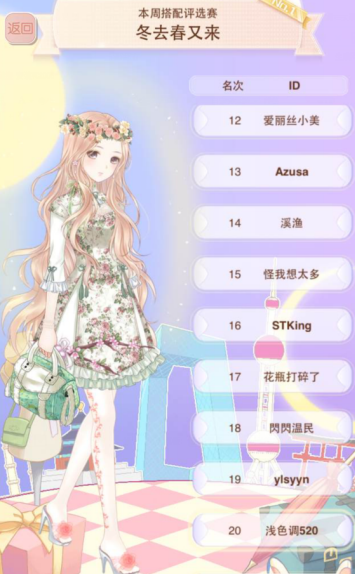 以上就是这期冬去春又来的主题搭配建议了,总的来说,只要搭配的小清新一些,花朵色彩多一些,都可以拿到较高的分数,其他的就只能看各自的运气了。祝各位暖粉们好运。
