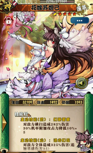 辅助剑第一——花嫁苏妲己,技能强大,后排回能量+高血量+中上的攻防+高百分比aoe,有了花嫁就死命养吧,在JJC前五十中可以看到一大片的花嫁,已经成为标志之一了。
