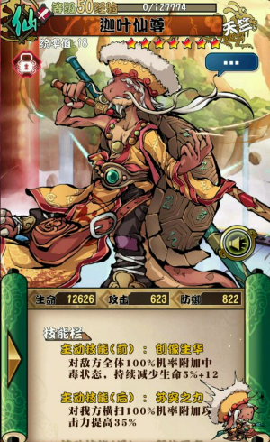 辅助剑第二——迦叶仙尊 不得不吐槽一句,说好的萌萌哒的战姬呢!你这只动物怎么回事。。当然乌龟的属性还是可以,强力的还是后排回能量,但三围和技能太逗。。不过依旧是辅助的剑系。。