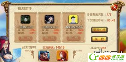 进入竞技场之后,会根据玩家当前排名情况推送数位竞技对手,如果玩家对系统推送的对手不满意,可以手动更换对手,不过每日玩家手动更换对手的次数是有限的。挑战对手成功后可获得对方排名位,失败排名无变化。