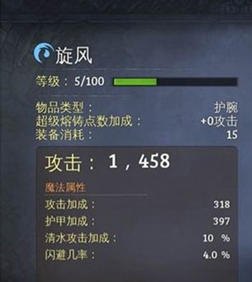 旋风是个很厉害的护腕装备,可以升5星。伤害高,能击飞敌人不论近战还是远程,还能减伤30%左右,技能最厉害之处小编觉得是旋转,打BOSS时候转几秒真能抵御不少伤害,使用时间挺长8秒左右。