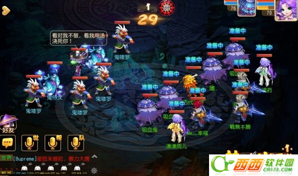 在本场战斗中,唯一需要注意的是,鬼喽啰全部是狮驼岭(但是攻击力不高),孟婆身边的两个鬼侍女HP比较多,而且在孟婆倒地之后,鬼侍女会复活孟婆。考虑到孟婆本身的输出并不高,玩家可以考虑先清小怪在解决孟婆。(类似于混世魔王副本中最后一关的打法)