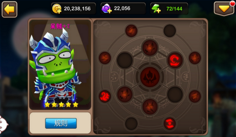 铭刻面板如图所示,最外圈的铭刻位最小,中间环的铭刻位稍大,正中的则最大,目前外圈开放6个铭刻位,中环4个,中心1个。