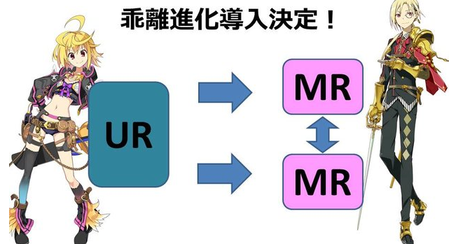 使用特殊的进化素材的“乖离进化”即将登场!并不是进化成比MR更高一层的系统,而是同一张UR能够进化成不同的MR(共两种?)
