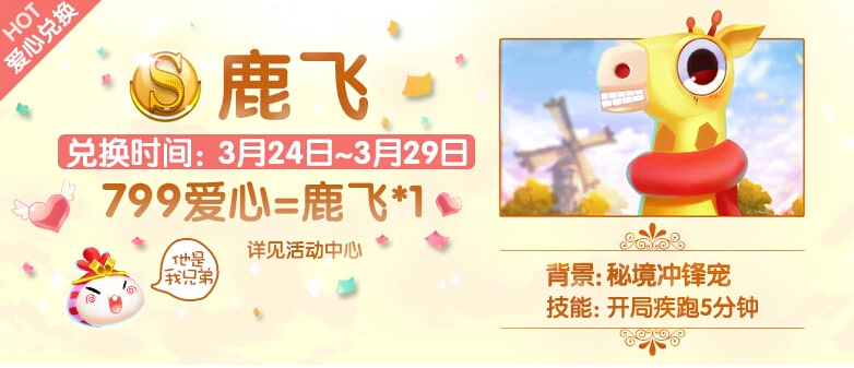 活动期间玩家可购买一次宠物“鹿飞“——799爱心