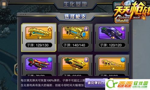 生化基地是《天天枪战》中的一个副本玩法,在完成“生化基地”这个主线任务后开启。灰暗的色调,阴霾的天空,在这里充斥着无数倍生化病毒感染的高危丧尸。想要攻打生化基地的玩家,可以自行选择适配的枪支,提前装填好弹药。在战斗开始前,如果玩家选择的枪支与关卡丧尸BOSS的属性相同,系统会提示玩家更换枪支!属性相克的比如:火克雷、雷克冰、冰克火,使用属性相克的枪支攻打丧尸,伤害可以加成哦!