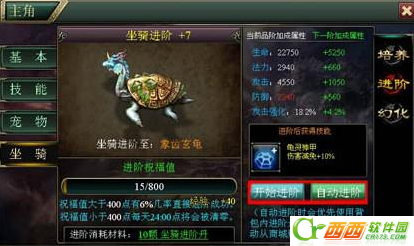 进阶分为手动进阶和自动进阶,进阶会消耗坐骑进阶丹。