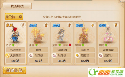 唐僧+玉面狐狸+孙悟空+观音菩萨,3名治疗性助战队友,1名物攻型助战队友。