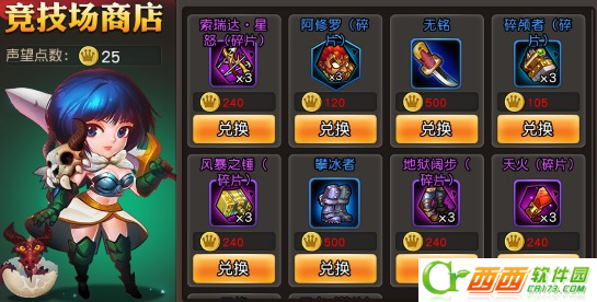 点击竞技场界面兑换按钮可以使用声望兑换英雄、装备、道具等极品奖励