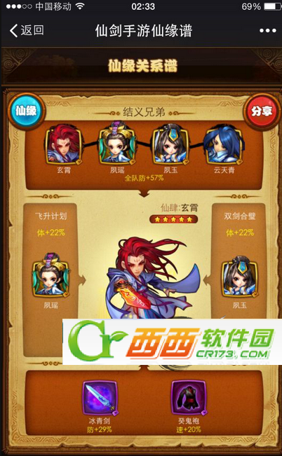 玄霄+夙瑶+夙玉+云天青(结义兄弟):全体防+57%