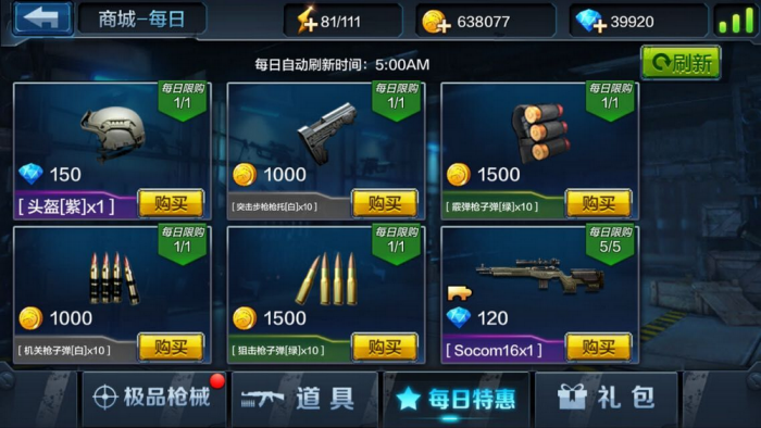在全新版本更新后,商城将会开放每日特惠系统,各位队长每天都可以在这里买到价格非常优惠的实用商品。人物装备配件以及武器配件等最实惠的道具就在这里啦~