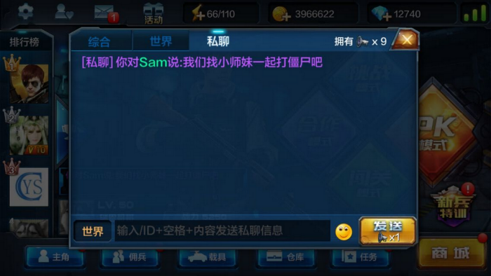 私聊频道更能便捷的与战友交流,队长们快点约起来吧~