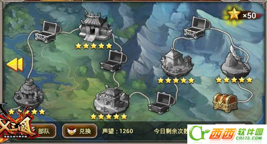 在《X三国》北伐战场上,每天有1次挑战的机会,0点系统会重置关卡。战斗结束后,会根据玩家角色在战场上的表现评定星级数量,星级数量可累积。每次战斗结束后可开启一个宝箱,并且开启宝箱将消耗星数,分为3星,4星和5星宝箱,星数越高的宝箱物品越好,宝箱会掉落包括装备,装备碎片,武将将魂,经验道具,钱币等等,难度越高的关卡,战胜后开启宝箱获得好物品的概率越高!