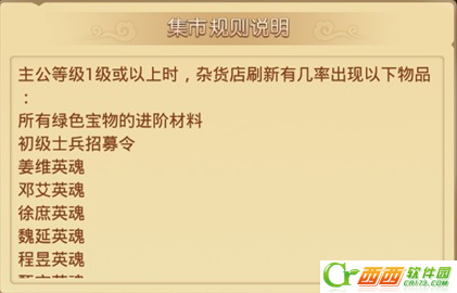 集市是一个初期提升战力的非常不错选择,能够获得各种所需要的进阶材料,士兵招募令,武将英魂等,如果大家平时留意游戏里的集市刷新物品,都会注意到这一点的,现在我们来分享市集的详细介绍。