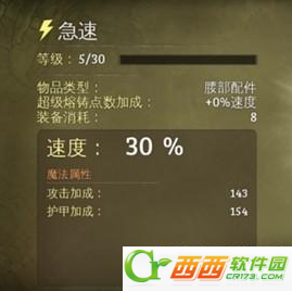 急速是个腰部装备,是大部分玩家都很喜欢的装备之一,拥有超高的攻击速度,小编之后使用的是巨剑,发现穿戴之后终于不那么缓慢了!!当然其他武器职业也适用哦,可以进阶到3星!