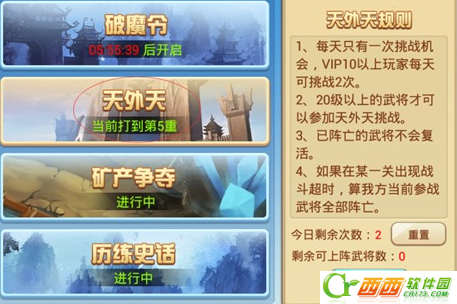 1.进入挑战前可以先了解一下如下图所描述的天外天规则,在挑战当中可以少走很多的弯路。