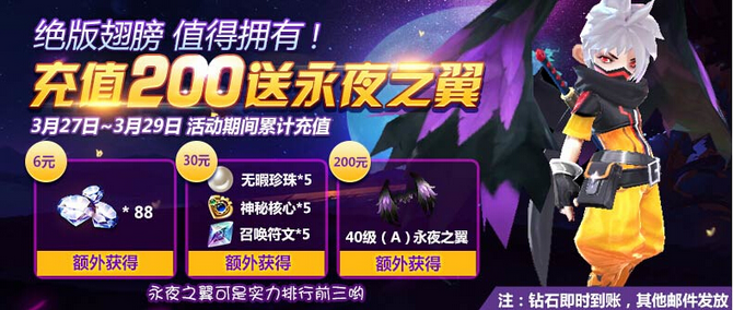 天天风之旅又推出了一款新的飞行翅膀——永夜之翼,这款有着神秘紫色外观的A阶翅膀有着什么不同之处呢,不过说它是土豪专属可是一点也没有错,毕竟之前的战斗之翼、缤纷之翼都是不错的,那么这款A阶的永夜之翼值不值得购买,永夜之翼的属性怎么样,装备了永夜之翼又会获得什么样的技能,我们一起来看看吧。