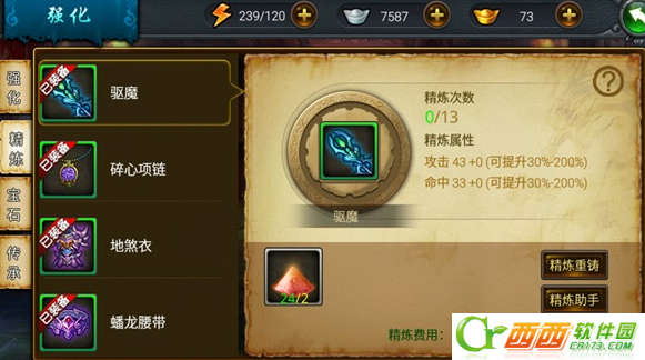 每件装备有13次精炼次数,如果道友达到《聊斋志》VIP8之后,每个VIP等级还将增加1次额外精炼次数,最高可额外精炼8次呢。