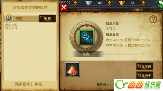如果道友对精炼的属性不满意,还可以选择“精炼重铸”获取更好的属性,用作替换旧属性哦。