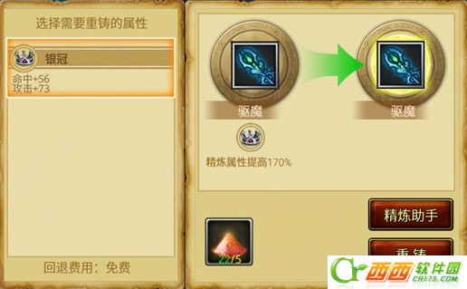 提示:精炼助手不要随便用,这是一个非常烧钱的玩法,它会为了把精炼目标炼到皇冠就不停滴洗了退洗了退(至少目前是这样的),一般非大R玩家点这个会炸裂的。