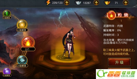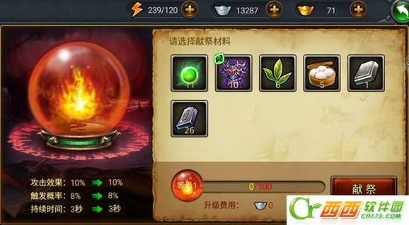 道友对于喜欢的附魔效果,还可以对其进行升级,获得更好的属性并让武器绽放更大光彩。选择需要献祭的材料,花费一定的银两就可以献祭了。