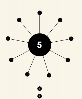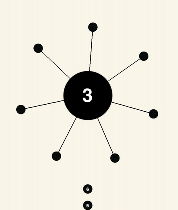 游戏画面非常的简洁,米白色的背景中央,放置着一个不断旋转的太阳状的球体,周边网状似的放射连接着许多小球,又有点宇宙中星球的感觉,所有球体均以黑色为主,与米白色的背景产生出了鲜明的对比,在一定程度上,为玩家带来了一定的视觉冲击感。