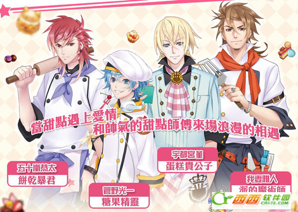 《甜点王子》采用了 Live 2D 技术打造,从立绘到 SD 角色全都能摆出各种动作,而不再是呆板的平面插画。游戏提供饼干暴君、蛋糕王子、糖果精灵、派的魔术师4位帅气甜点师傅与玩家共谱恋曲,在烘焙方面也有可爱的动物饼干、法式甜点、糖果等上百种美味供妹纸们收集。