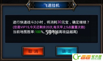 2、使用飞速挂机。飞速挂机每次消耗少量元宝,可直接获得2小时的收益。非VIP玩家每天可以使用1次,VIP玩家根据VIP等级可获得更多次数。(此功能为最快的经验获得途径,一定不能错过哦!)