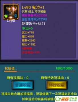 提升幸运需要消耗祝福油,使用超级祝福油可提升成功率;即使祝福失败也不会有任何损失,失败会额外获得祝福值,祝福值累加到一定数量会100%成功;祝福油可以通过争夺皇城或神秘商店获得;