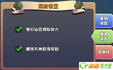1、每日仙豆领取体力:每天中午12:00-14:00 ,18:00-22:00都可以领取到60点能量哦。怕遗忘时间没领取到体力,别担心,打开游戏“系统设置”,在“每日仙豆领取体力”前打上勾,领取时间一到,手机会提示可以领取体力,是不是很方便。快去查看下是否有开启呢。主界面点击左上角的等级→系统设置→推送设置。